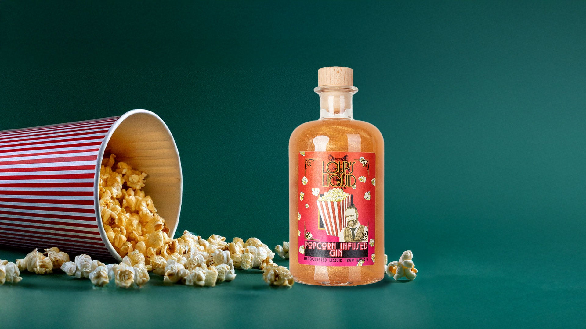 LOUP'S LIQUID Popcorn Infused Gin - mit weicher Popcorn-Note und einmaligem Glitzer-Effekt - handcrafted, 0,5 l, 30%